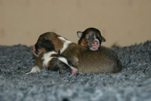 Alice fick den 21/3 sex valpar. Tre hanar och tre tikar. Mycket fina vikter på valparna. Mycket jämna. Varma och pigga. Diar för fullt. Alice är en mycket bra mamma, tar hand om sina små med största bravur.